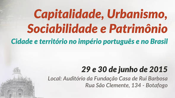 A Fundação Casa de Rui Barbosa (FCRB), em parceria com a Universidade Federal Fluminense - Programa de Pós Graduação de Arquitetura e Urbanismo (PPGAU), Programa de Pós Graduação de História (PPGH) e Companhia das Índias (núcleo de História Ibérica na Época Moderna ligado ao PPGH) - realiza o seminário Capitalidade, urbanismo, sociabilidade e patrimônio: cidade e território no império português e no Brasil. O evento acontece nos dias 29 e 30 de junho, no auditório da FCRB e tem o apoio da Faperj e do CNPq.