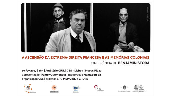Benjamin Stora é convidado do Centro de Estudos Sociais, da Universidade de Coimbra, através dos projetos europeus MEMOIRS – Filhos de Império e Pós-Memórias Europeias e CROME – Memórias Cruzadas, Políticas de Silêncio. As Guerras Coloniais e de Libertação em Tempos Pós-coloniais, financiados pelo European Reserach Council (ERC) e dirigidos respetivamente por Margarida Calafate Ribeiro e Miguel Cardina.