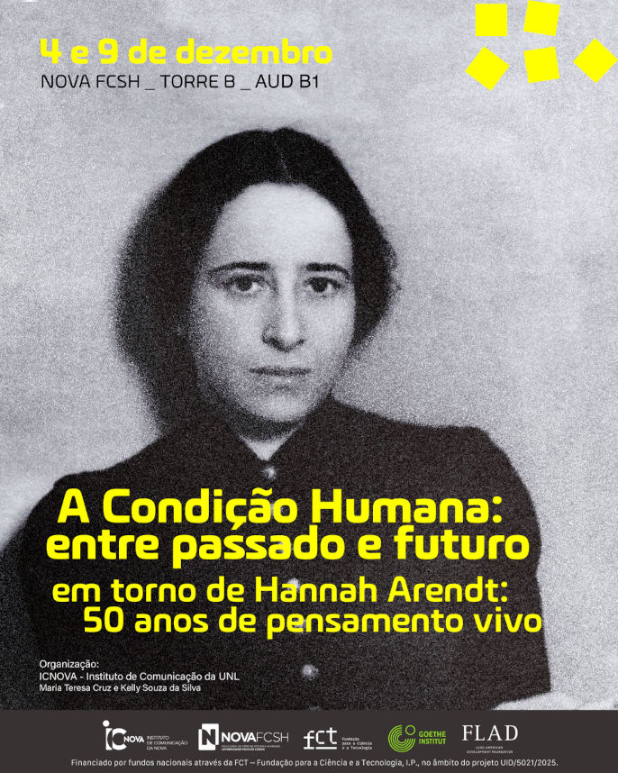 O Instituto de Comunicação da NOVA FCSH (ICNOVA) organiza, nos dias 4 e 9 de dezembro de 2025, o programa “A Condição Humana: entre passado e futuro — em torno de Hannah Arendt: 50 anos de pensamento vivo”, um ciclo de palestras, conversas e projeções de filmes dedicado a uma das figuras mais marcantes do pensamento político do século XX.