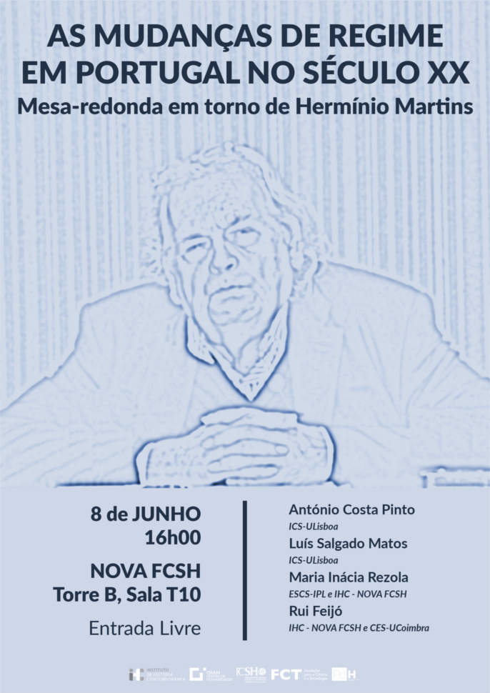 Hermínio Martins (1934-2015), um cientista social com um largo espectro de interesses e uma obra profundamente original, dedicou os seus últimos anos de vida a uma monografia (As Mudanças de Regime em Portugal no Século XX, Imprensa de Ciências Sociais, 2018) em que procurou reflectir sobre as diversas mudanças de regime em Portugal no século XX. Com uma forte propensão comparativa e sentido problematizante, a obra póstuma de Martins desafia historiadores e outros cientistas sociais a revisitar alguns dos debates clássicos em torno das transições políticas da nossa contemporaneidade. Esta mesa-redonda visa discutir quer o livro agora publicado quer os diferentes contributos de Martins para a história e sociologia do Portugal Contemporâneo, vinte anos depois da publicação de Classe, status e poder: e outros ensaios sobre o Portugal contemporâneo (Imprensa de Ciências Sociais, 1998).