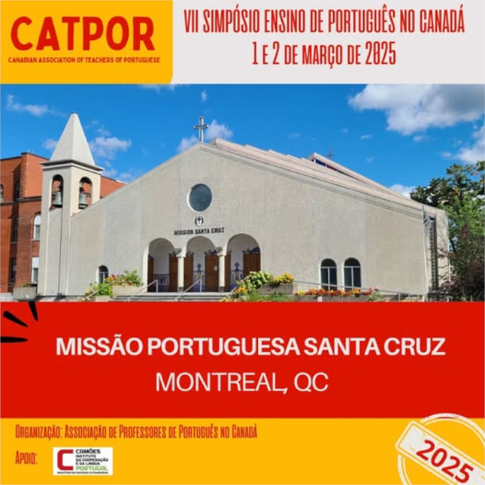 A CATPor (Canadian Association of Teachers of Portuguese – Associação de Professores de Português do Canadá, em português), uma associação que agrega os docentes de língua portuguesa no Canadá, realiza o seu sétimo simpósio sobre o ensino do português, nos dias 01 e 02 de março de 2025, na Missão Santa Cruz em Montreal, QC, com o apoio da Coordenação do Ensino de Português no Canadá.