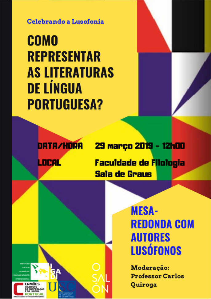 O Camões – Centro Cultural Português em Vigo, em colaboração com o Núcleo de Professoras/es de Português da Faculdade de Filologia da Universidade de Santiago de Compostela, o Instituto Galego de Análise e Documentação Internacional que este ano tem o seu Congresso "Galicia e a lusofonía diante dos desafíos globais" e com o “XX Salón do Libro Infantil e Xuvenil de Pontevedra”, que este ano é dedicado às culturas lusófonas, organiza uma Mesa-Redonda a ter lugar na Faculdade de Filologia da Universidade de Santiago de Compostela, Sala de Graus, dia 29 de março, pelas 12h e cujo tema serão as literaturas de língua portuguesa. Para enriquecer o debate, moderado pelo Professor Doutor Carlos Quiroga, também escritor, participarão os seguintes autores lusófonos: