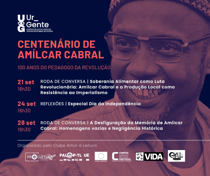 O Ur_Gente, Centro de Artes Cénicas Transdisciplinar de Bissau recebe nos dias 21, 24 e 28 de setembro de 2024, mês da independência da Guiné-Bissau, sempre pelas 16h30, uma programação de conversas e reflexões em torno da figura de Amílcar Cabral, o pedagogo da revolução, organizadas pelo Clube amor à leitura.