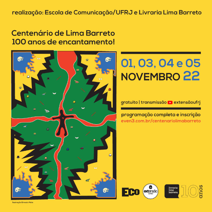 O Centenário Lima Barreto (1981-1922) é uma realização da Escola de Comunicação da UFRJ e da Livraria Lima Barreto. A programação acontece nos dias 01, 03, 04 e 05 de novembro de 2022, sendo um evento gratuito, com inscrição prévia e transmissão online. A programação conta com a participação de especialistas na obra de Lima Barreto, historiadores, escritores, jornalistas, editores e documentaristas, sendo uma bela e justa homenagem que pretende destacar a importância do escritor para entender e pensar o Brasil de Lima Barreto nos dias de hoje. Com duração de quatro dias, proporcionamos ricas palestras e debates para o público interessado de um modo geral. O leitor e o ouvinte serão motivados a se reconectar com a memória, pensar o presente e o futuro.