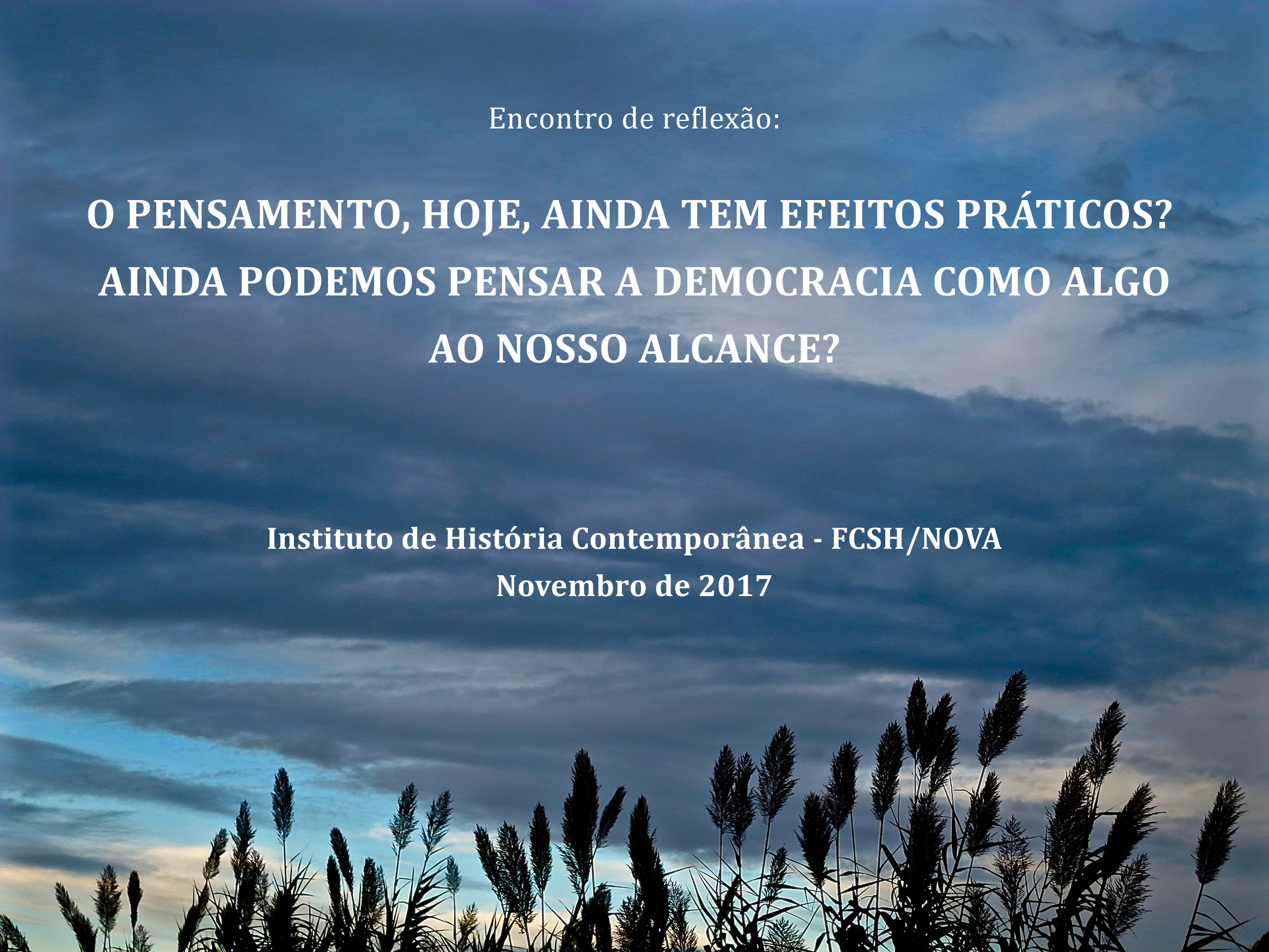 Num fundo, volta a velha pergunta, inquietante: que fazer?... pode ainda o pensamento salvar-nos, a todos, ou pelo menos à maioria de nós, e não apenas a alguns “esclarecidos” ?... São estas questão inadiáveis que nos propomos abordar, com a maior liberdade e com a maior frontalidade, concordando ou discordando uns dos outros, sem querer de forma ingénua chegar certamente à fórmula mágica da salvação, nesta jornada de trabalho - que parece impor-se num Instituto que se consagra a pensar as questões da História Contemporânea.