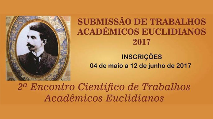 O 2ª Encontro Científico de Trabalhos Acadêmicos Euclidianos ocorrerá durante a Semana Euclidiana 2017, de 09 a 15 de agosto, em São José do Rio Pardo, São Paulo. O evento, organizado pela Casa De Cultura Euclides da Cunha seleciona trabalhos que tenham temáticas que referenciam a obra de Euclides da Cunha. A inscrição pode ser feita até 12 de junho.