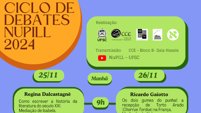 As atividades do Ciclo de Debates NuPILL 2024 serão realizadas na Sala Hassis, do Bloco B do Centro de Comunicação e Expressão da UFSC, das 9h às 18h, e serão transmitidas online por meio da conta NuPILL - UFSC no Youtube. O evento é aberto ao público e não há necessidade de inscrição prévia.
