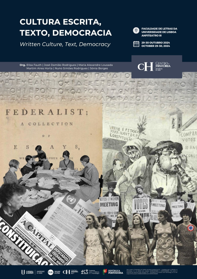 Nos 50 anos da nossa democracia, o Centro de História da Universidade de Lisboa organiza um colóquio em torno dos textos e da cultura escrita na história da Democracia. Propõe-se explorar este entrelaçar através de dois ângulos. Aquele da teoria nos textos - os textos da democracia enquanto tradição e reflexão permanente sobre o regime - e aquele da prática dos textos - os textos e os seus suportes como materialidade necessária para o funcionamento do regime e que também decorre da sua prática. Bibliófila e bibliófaga, a democracia depende de textos e funciona pelas suas materialidades.
