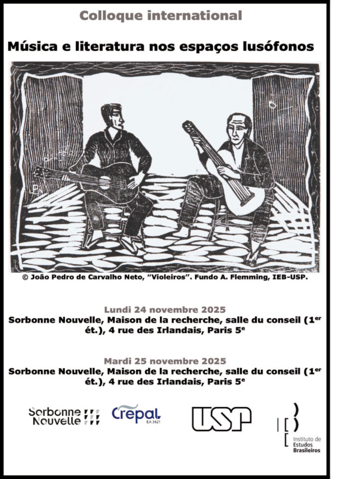 O Colóquio Internacional “Música e literatura nos espaços lusófonos” será realizado nos dias 24 e 25 de novembro de 2025, em Paris, fruto de uma parceria entre o Instituto de Estudos Brasileiros (IEB/USP) e a Université Sorbonne Nouvelle.
