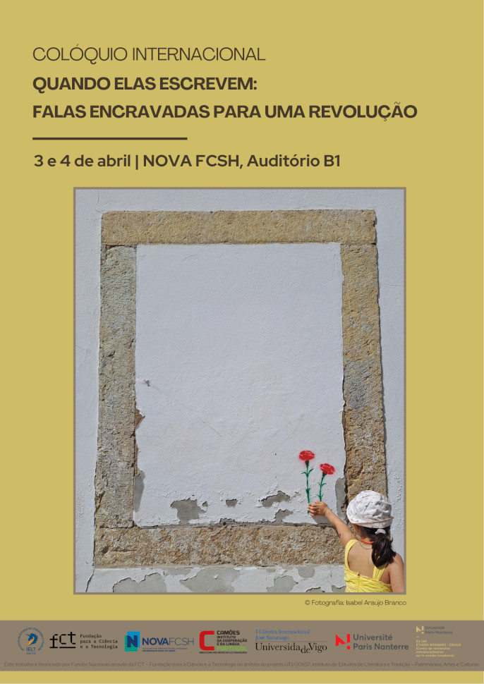 No quadro das comemorações dos 50 anos do 25 de Abril, realiza-se nos dias 3 e 4 de abril, na NOVA FCSH, o Colóquio Internacional “Quando elas escrevem. Falas encravadas para uma revolução”, organizado pelo IELT, com a colaboração do CRILUS, Études Romanes, da Universidade de Paris Nanterre, e da I Cátedra Internacional José Saramago, da Universidade de Vigo. Este encontro pretende promover uma discussão alargada sobre as obras de escritoras que ousaram falar e “levantaram a grimpa contra os costumes”, que escreveram sobre assuntos pretensamente indecorosos, protagonizando, acima de tudo, uma revolução literária no século XX.