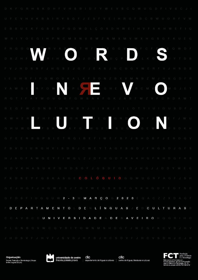 O Colóquio Words in REvolution decorrerá nos dias 2 e 3 de março de 2020, no Departamento de Línguas e Culturas da Universidade de Aveiro, tendo como objetivo principal promover e divulgar o conhecimento e a investigação realizada em Tradução e Terminologia. De forma muito particular, pretende-se incentivar o debate sobre as mais recentes (r)evoluções no âmbito da Didática da Tradução, da Profissão do Tradutor, da Tradução Literária, da Tradução de Especialidade e da Tradução para os Media, impulsionadas pela revolução tecnológica.