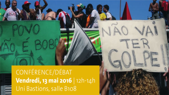 A Unidade de Português da Faculdade de Letras da Universidade de Genebra convida para a Conferência / Debate «Fim do jogo para a esquerda brasileira? O estado da democracia no Brasil» (Fin de partie pour la gauche brésilienne? L’état de la démocratie au Brésil), por Armelle Enders (Universidade Paris-Sorbonne / Universidade de Genebra), a ser realizada no dia 13 de maio de 2016.