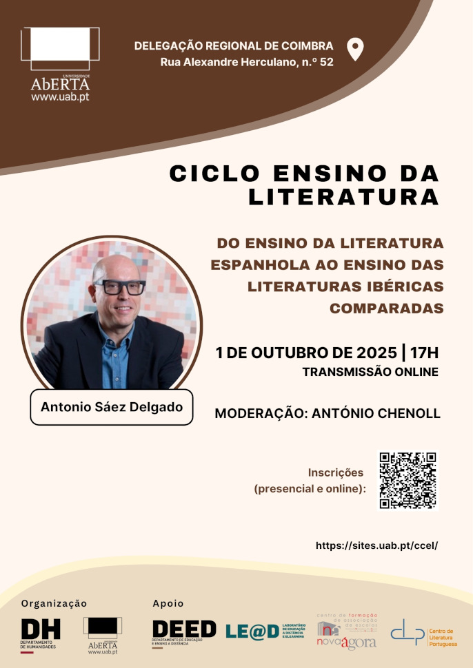 A primeira conferência do Ciclo sobre o Ensino da Literatura, organizado pelo Departamento de Humanidades da Universidade Aberta, terá lugar no próximo dia 1 de outubro, às 17h, na Delegação Regional de Coimbra (Rua Alexandre Herculano, n.º 52).