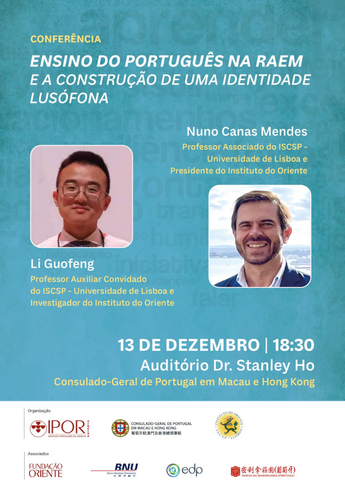 Conferência com os Professores Li Guofeng e Nuno Canas Mendes do Instituto do Oriente, dia 13 de dezembro, às 18h30 no auditório do Consulado-Geral de Portugal em Macau e Hong Kong.