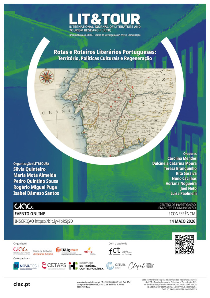 A Conferência Rotas e Roteiros Literários Portugueses: Território, Políticas Culturais e Regeneração, a realizar-se no próximo dia 14 de maio de 2026, em formato online, propõe-se dar a conhecer e a discutir um conjunto diversificado de rotas e roteiros literários desenvolvidos em Portugal.