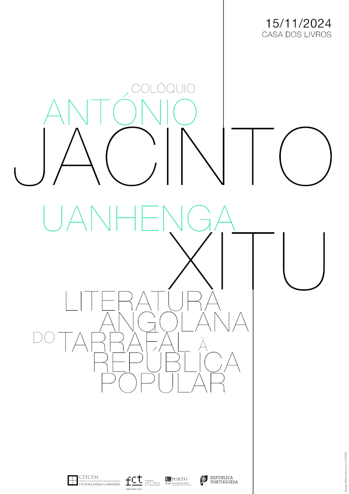 A Casa dos Livros/Centro de Estudos da Cultura em Portugal da Universidade do Porto (Rua do Campo Alegre, 1055, Porto), recebe no dia 15 de novembro de 2024 o "Congresso António Jacinto Uanhenga Xitu : Literatura angolana do Tarrafal à República Popular", organizado por Francisco Soares (CITCEM) e Francisco Topa (U. Porto / CITCEM).