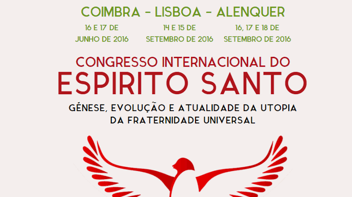 Já está disponível o programa do Congresso Internacional do Espírito Santo: Génese, Evolução e Atualidade da Utopia da Fraternidade Universal, que decorrerá na Fundação Calouste Gulbenkian nos dias 14 e 15 de setembro, e na Câmara de Alenquer nos dias 16, 17 e 18 de setembro de 2016.