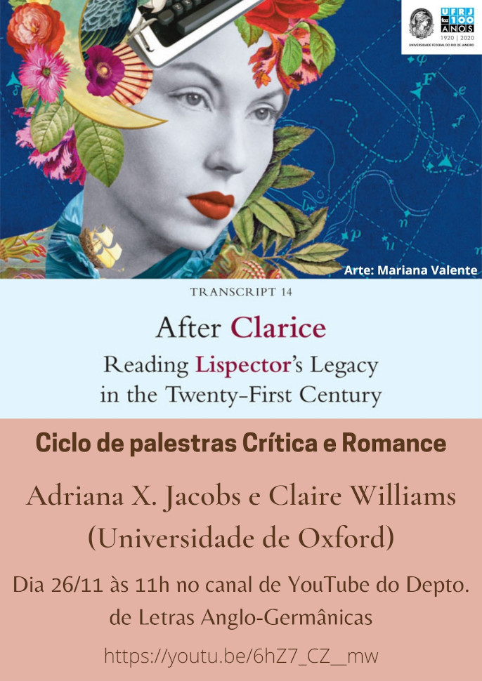 Jacobs e Williams discutirão a recepção internacional da obra de Clarice Lispector no século XXI. Em suas palestras, elas também apresentarão as suas contribuições para o livro After Clarice: Reading Lispector's Legacy in the Twenty-First Century, que foi editado pelas palestrantes e será lançado em 2022 pela Legenda/MHRA.