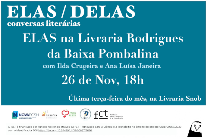 A próxima sessão da tertúlia Elas/Delas: conversas literárias decorre no dia 26 de novembro na Livraria Snob.