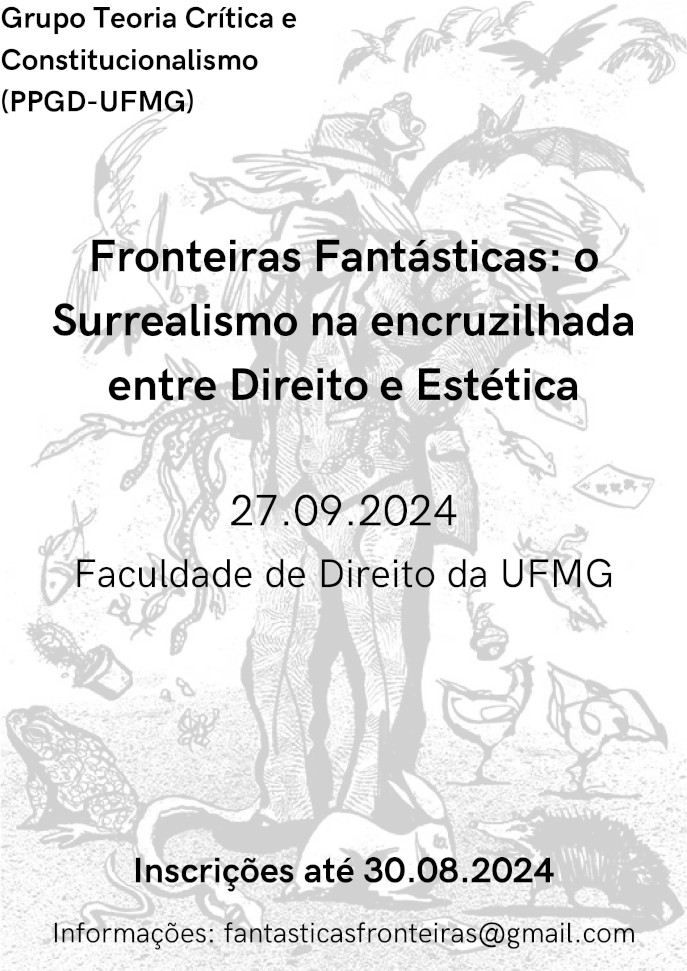 O evento “Fronteiras Fantásticas: o Surrealismo na encruzilhada entre Direito e Estética” surge da necessidade de explorar as complexas relações entre a estética e o direito, ética e estética, política e arte, por meio do prisma do insólito e do fantástico. Este tema desafia as fronteiras convencionais das narrativas, sejam elas ficcionais ou jurídicas, abrindo espaço para reflexões profundas sobre a condição humana, questões sociais e políticas, e os limites da realidade percebida.