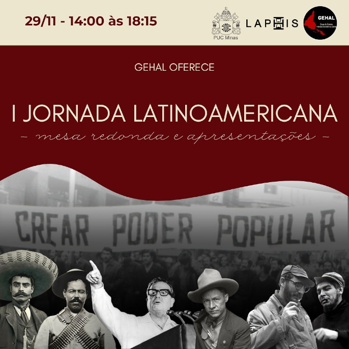 O Grupo de Estudos de História da América Latina (GEHAL), vinculado ao Laboratório de Pesquisa Histórica (LAPHIS) do curso de História da PUC-MG, promove a I Jornada Latinoamericana, que será realizada no dia 29 de novembro de 2024, de forma remota, das 14h às 18h15.