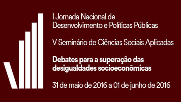 O Programa de Pós-Graduação em Desenvolvimento Socioeconômico (PPGDS) da Universidade do Extremo Sul Catarinense (Unesc) realiza a I Jornada Nacional de Desenvolvimento e Políticas Públicas e o V Seminário de Ciências Sociais Aplicadas, a ser realizados nos dias 31 de maio e 1 de junho de 2016, subordinados ao tema: "Debates para a superação das desigualdades socioeconômicas".