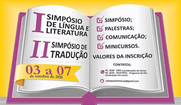 Entre 3 e 7 de outubro acontecem o I Simpósio de língua e Literatura e II Simpósio de Tradução na Universidade Tecnológica Federal do Paraná (UTFPR). Organizados pelo Departamento Acadêmico de Letras, o Mestrado de Letras e o Centro Acadêmico Paulo Leminski, o evento contará com simpósios, minicursos, comunicações e outras atividades culturais.