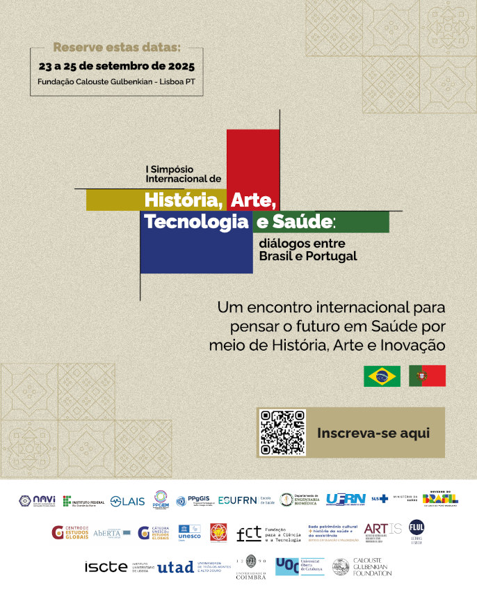 Nos dias 23 a 25 de setembro de 2025, terá lugar o I Simpósio Internacional de "História, Arte, Tecnologia e Saúde: diálogos entre Brasil e Portugal", organizado pelo Centro de Estudos Globais / Universidade Aberta (CEG-UAb) e pelo Laboratório de Inovação Tecnológica em Saúde / Universidade Federal do Rio Grande do Norte (LAIS/UFRN), em parceria com diversas instituições nacionais e internacionais.