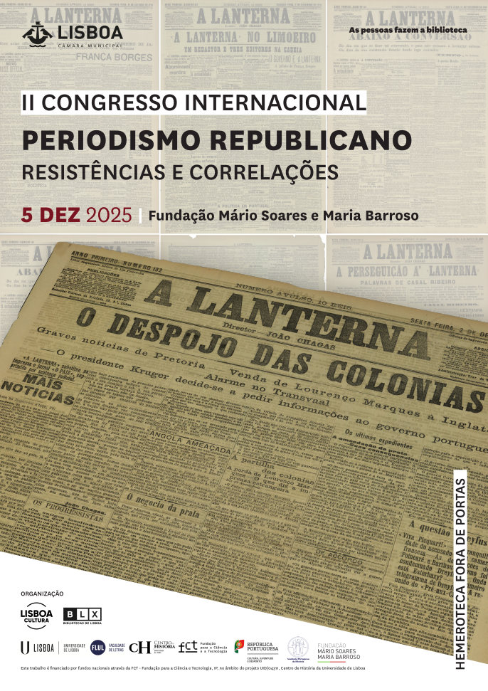 No âmbito do centenário da morte de João Chagas, a Hemeroteca Municipal de Lisboa e o Centro de História da Universidade de Lisboa organizam o II Congresso Internacional Periodismo Republicano: resistências e correlações, que terá lugar no dia 5 de dezembro de 2025, na Fundação Mário Soares e Maria Barroso.