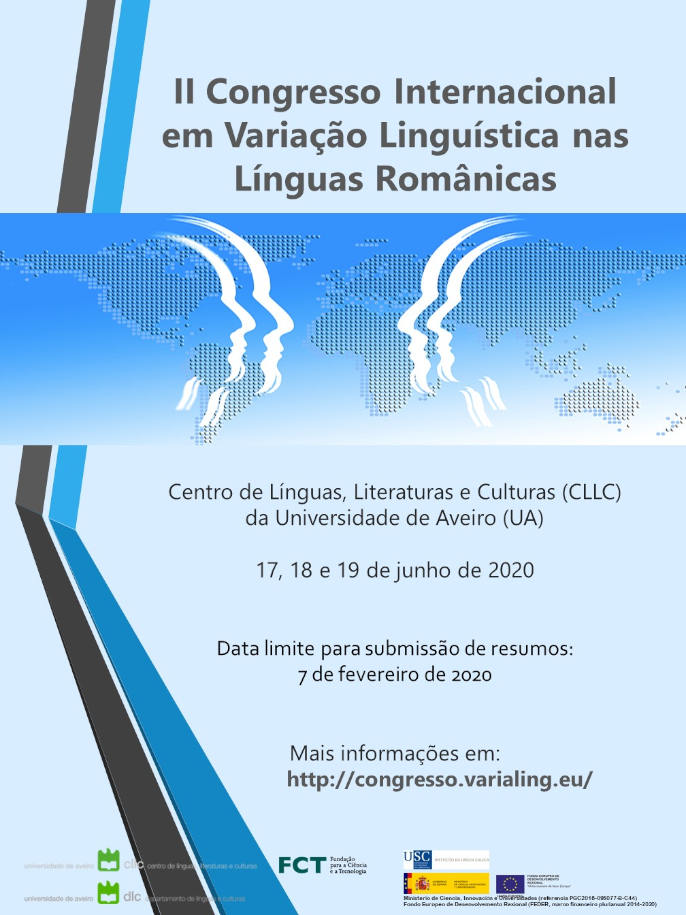 Realiza-se, com o apoio do Centro de Línguas, Literaturas e Culturas, nos dias 17, 18 e 19 de junho de 2020, no Departamento de Línguas e Culturas da Universidade de Aveiro, o II Congresso Internacional em Variação Linguística nas Línguas Românicas. Este evento pretende ser um fórum que procura promover e difundir a investigação na área da variação linguística nas línguas românicas. O objetivo fundamental do encontro é reunir estudiosos dessas variedades linguísticas, a fim de discutir questões empíricas, metodológicas e teóricas do estudo da variação e mudança linguística sob distintas perspetivas.