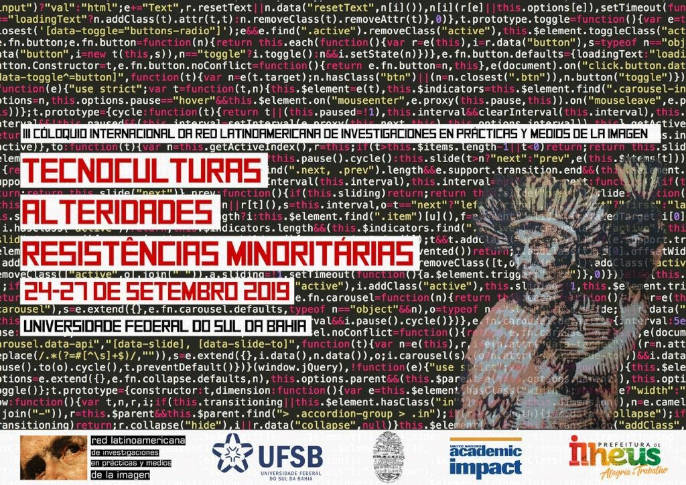 O III Colóquio Internacional da Red Latinoamericana de Investigaciones en Prácticas y Medios de la Imagen: Tecnoculturas, Alteridades e Resistências Minoritárias propõe pensar as relações entre tecnologia e subjetividades na cultura contemporânea. Neste sentido, provoca a discussão dos modos de resistir/sobreviver/produzir de alteridades que se veem, em pleno século XXI, ameaçadas de apagamento. Em parceria com a ONG Thydêwá, o evento também abrigará a II° Mostra Arte Eletrônica Indígena (AEI), e coincide com a XIX° Caminhada pelos Mártires do Rio Cururupe, organizado pelo povo indígena Tupinambá. Os Colóquios da Red possuem, vale notar, a singularidade de não se constituírem somente como encontros acadêmicos, mas há também uma preocupação com o processo de formação, envolvimento e parcerias com as comunidades dentro das quais se inserem – características traduzidas não só pela gratuidade e ampla abertura das mesas e discussões, como também dos workshops/laboratórios e encontros com mestrandos e doutorandos. O Colóquio abre-se, assim, como espaço de acolhimento, resistência e experimentações para a comunidade do Sul da Bahia, aproximando o Sul da Bahia do mundo e, igualmente importante, o mundo do Sul da Bahia.