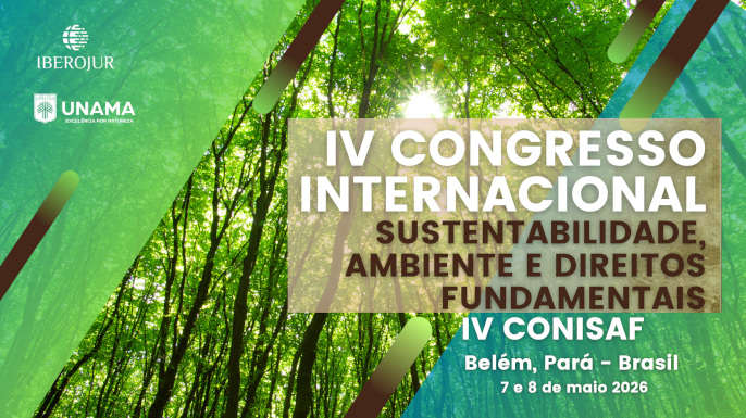 O Instituto Iberoamericano de Estudos Jurídicos (IBEROJUR) promove, de 7 a 9 de maio de 2026, o IV Congresso Internacional sobre Sustentabilidade, Ambiente e Direitos Fundamentais (IV CONISAF), na Universidade da Amazônia (UNAMA), em Belém do Pará, Brasil. O evento realiza-se em modalidade híbrida, presencial e online.