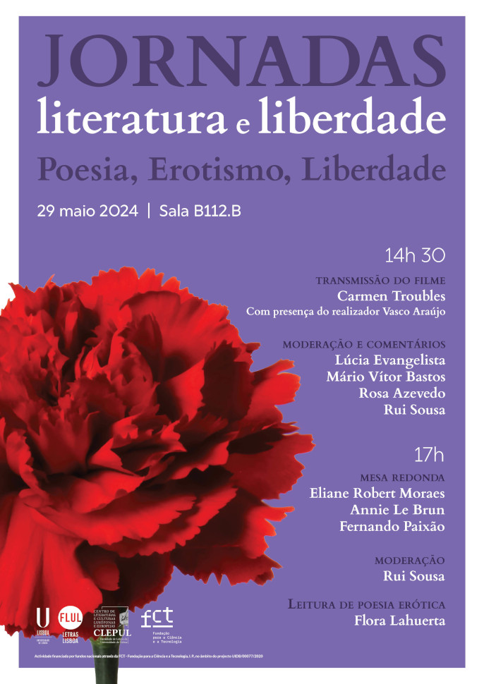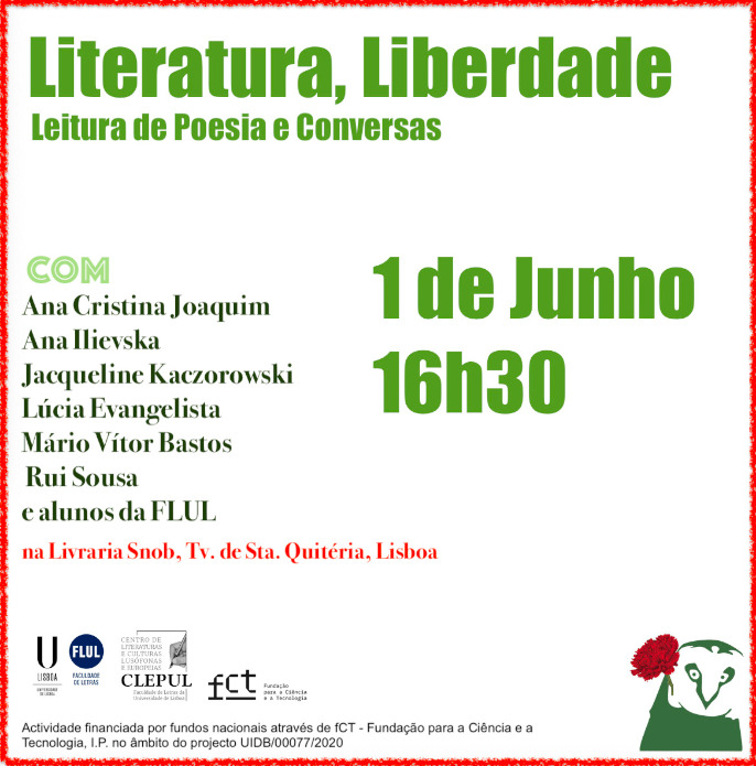 Este ciclo de eventos terá lugar na Faculdade de Letras da Universidade de Lisboa e na Livraria Snob e contará com três encontros sobre Literatura e Liberdade. Nos dias 28 de Maio e 03 de Junho, serão discutidos assuntos vários relacionados com as relações entre literatura e liberdade, liberdade e autoritarismos, censuras e expressões contemporâneas dos grandes problemas suscitados pelo contraponto entre indivíduo e colectividade. No dia 29 de Maio, será transmito um filme do realizador Vasco Araújo, que estará presente para discutir a figura mítica de Carmen em clave feminista, e será realizada uma leitura de poesia erótica e uma sessão sobre as relações entre o erotismo e a liberdade. Entre os dias 4 e 7 de Junho, realiza-se o Congresso Internacional Modernidades Plurais, que pretende tratar de diferentes ângulos o impacto dos Modernismos e Surrealismos, em Portugal e um pouco por todo o mundo, no centenário do Manifesto do Surrealismo (1924). Serão ainda realizadas sessões informais na livraria Snob (dias 1 e 8), com leitura de poesia, conversas sobre literatura e liberdade e reflexões sobre música portuguesa e internacional, e uma conferência sobre Machado de Assis e Shakespeare, pelo especialista João Cezar Rocha (11-06).