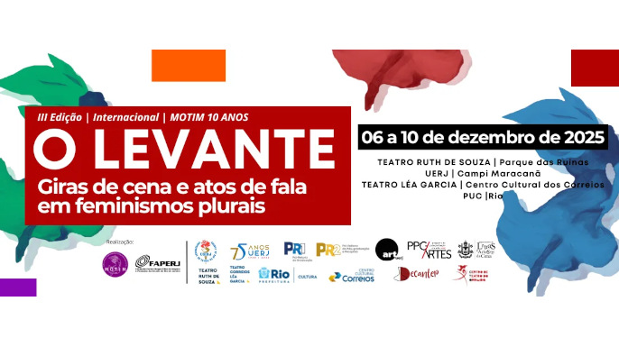 O Levante (III edição) – Motim 10 anos: giras de cena e atos de fala em feminismos plurais é realizado pelo grupo de pesquisa e extensão MOTIM – Grupo de Pesquisa e Extensão Mito, Rito e Cartografias Feministas (CNPq/UERJ), sob a liderança da Profa. Dra. Luciana Lyra. O LEVANTE acontecerá entre 06 e 10 de dezembro de 2025, e suas ações se distribuirão em multiespaços, a saber: no Teatro Ruth de Souza (Parque das ruínas Glória Maria), Teatro Léa Garcia (Centro Cultural dos Correios), na UERJ (Campi Maracanã) e PUC/RJ.
