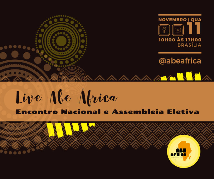 A Associação Brasileira de Estudos Africanos (ABE-ÁFRICA),convida a todas as pessoas associadas ou interessadas nos estudos de África, de quaisquer disciplinas acadêmicas e/ou interesses profissionais para participar do seu 2º Encontro Internacional no dia 11 de novembro de 2020, a ser transmitido pelas redes Facebook e YouTube, desta vez, numa versão mais reduzida em consequência da pandemia por coronavírus.