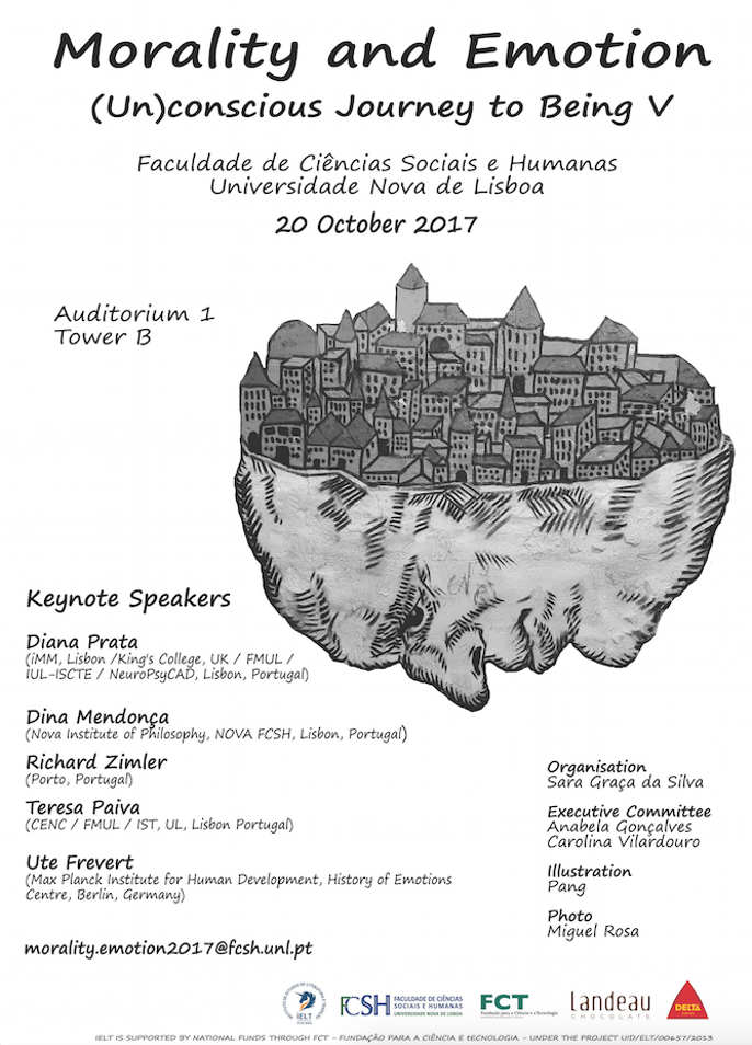 “Morality and Emotion: (Un)conscious Journey to Being” é um encontro interdisciplinar de frequência anual que reúne um conjunto de investigadores de renome das áreas científicas mais variadas que se juntam para discutir a relação entre moralidade e emoção, procurando encontrar pontos de encontro e desencontro. A quinta edição deste colóquio internacional terá lugar no dia 20 de outubro, sexta-feira, no Auditório 1 da Faculdade de Ciências Sociais e Humanas da Universidade Nova de Lisboa.