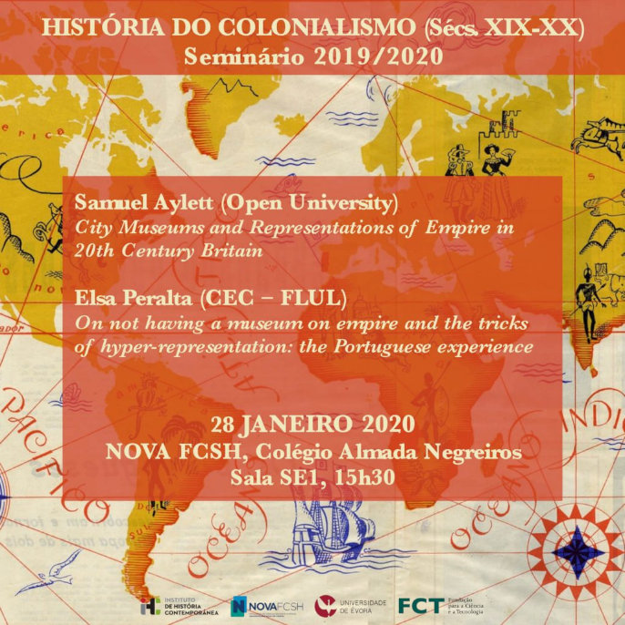 O Seminário de Investigação em História do Colonialismo (sécs. XIX-XX) do Instituto de História Contemporânea da NOVA FCSH pretende constituir-se como um espaço de discussão informal e aberto em que investigadores/as possam apresentar e debater as suas pesquisas (em curso ou já concluídas) sobre qualquer aspecto da história do colonialismo, descolonização e sociedades pós-coloniais nos séculos XIX e XX.