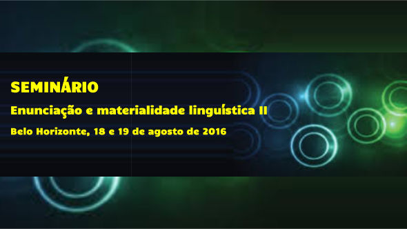 O Seminário "Enunciação e materialidade linguística" é realizado pelo Núcleo de Pesquisas ENUNCIAR, da Faculdade de Letras da Universidade Federal de Minas Gerais (UFMG). Na sua segunda edição, ele ocorrerá nos dias 18 e 19 de agosto de 2016 na própria Faculdade, em Belo Horizonte, e contará com o apoio do Programa de Pós-Graduação de Estudos Linguísticos (PosLin/FALE/UFMG).