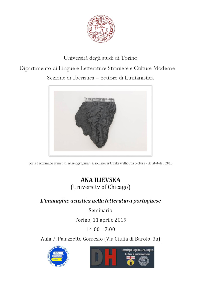 No próximo dia 11 de Abril de 2019, às 14:00, no Departamento de Línguas da Universidade de Turim (Itália), terá lugar uma conferência por Ana Ilievska (University of Chicago) intitulada “L’immagine acustica nella letteratura portoghese”.