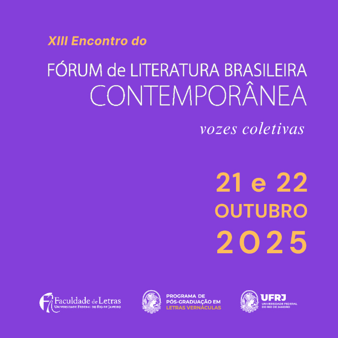 O XIII Encontro do Fórum de Literatura Brasileira Contemporânea acontecerá nos dias 21 e 22 de outubro de 2025, no auditório do PACC, na Faculdade de Letras da UFRJ.
