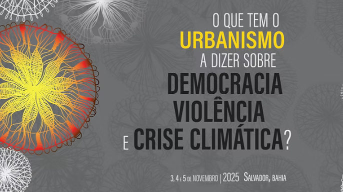 O XV Seminário Urbanismo na Bahia - urbBA[25], com o tema "O que tem o urbanismo a dizer sobre democracia, violência e crise climática?", convida pesquisadores/as, estudantes, profissionais e movimentos sociais a submeterem trabalhos que dialoguem com os seguintes eixos temáticos e suas interrelações, sempre a partir do urbanismo: 1. Democracia, 2. Violência e 3. Crise Climática