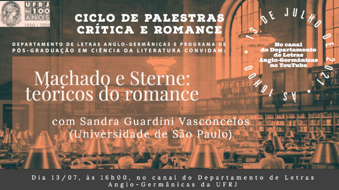 Machado e Sterne: teóricos do romance Sandra Guardini Vasconcelos (USP) Conferência: “Machado e Sterne: teóricos do romance”. Palestrante: Sandra Guardini Vasconcelos (USP). Quando? 13/07/21, às 16h00. Onde? Canal do Departamento de Letras Anglo-Germânicas da UFRJ (https://youtu.be/5VXc2jANye0). Prezados, Gostaríamos de convidá-los para participar do lançamento...