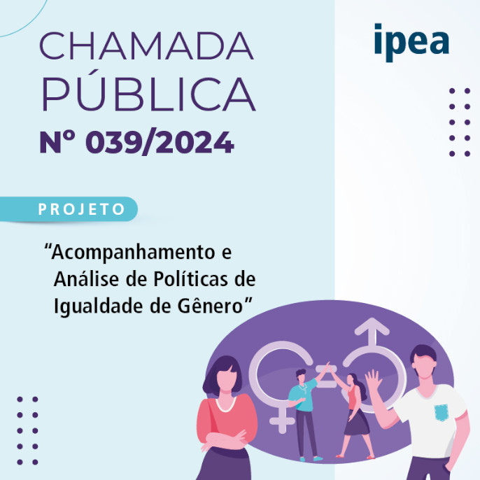 O Instituto de Pesquisa Econômica Aplicada (IPEA) está selecionando pesquisador(a) nas áreas de Ciências Sociais, Sociologia, Ciência Política, Administração Pública, Demografia, Economia ou Antropologia, para Assistente de Pesquisa III, com bolsa de estudos no projeto "Acompanhamento e Análise de Políticas de Igualdade de Gênero".