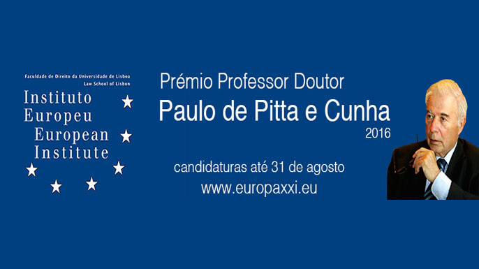 Até 31 de agosto os investigadores da área do Direito podem candidatar-se ao Prémio Professor Doutor Paulo de Pitta e Cunha. O melhor trabalho poderá ser publicado e será premiado com 2.500 euros. O prémio visa homenagear uma incontornável figura da história do Instituto Europeu, unanimemente considerado como um dos grandes impulsionadores dos estudos europeus em Portugal.