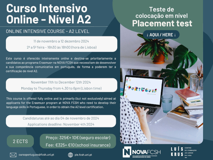 Curso Intensivo Online de Português Língua Estrangeira – Nível A2 na Nova FCSH