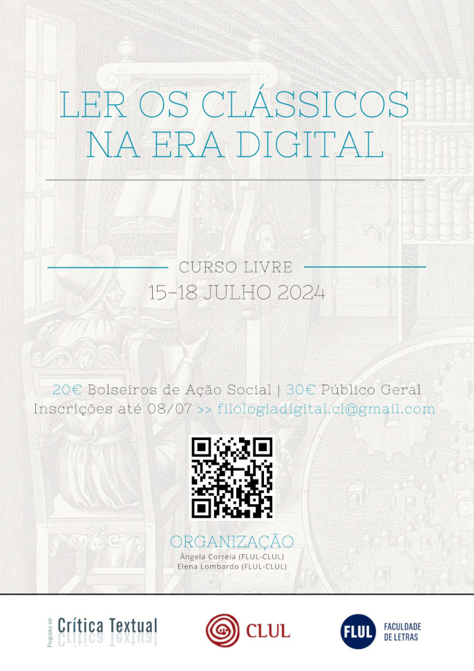 O presente curso constitui o segundo módulo do projeto Do pergaminho ao computador: editar manuscritos na era digital, que visa capacitar os participantes com os conhecimentos e as competências necessárias para compreender, planear e elaborar uma edição filológica digital, mas também promover uma maior compreensão e apreciação da Filologia Digital, tanto dentro da comunidade académica, quanto entre o público em geral. Neste segundo módulo, posterior a outro de introdução aos conceitos, métodos e práticas da Crítica Textual analógica, o foco será direcionado para o digital e as edições científicas digitais. O objetivo é oferecer aos inscritos uma panorâmica das possibilidades proporcionadas pela leitura/utilização de edições filológicas digitais, sem tratar especificamente a questão do mérito da sua realização. Após uma aula de caráter mais teórico, que abordará os conceitos de edição filológica e edição filológica digital, bem como as suas implicações, passar-se-á a uma fase prática. Nesta, o objetivo será sugerir boas práticas de utilização de uma edição digital e explorar possíveis interações de um leitor/utilizador. Nesta fase, uma contribuição fundamental virá dos interesses dos próprios participantes, que terão a possibilidade de preparar atividades de leitura e exploração de uma dada edição digital, de acordo com os seus próprios objetivos e curiosidades.