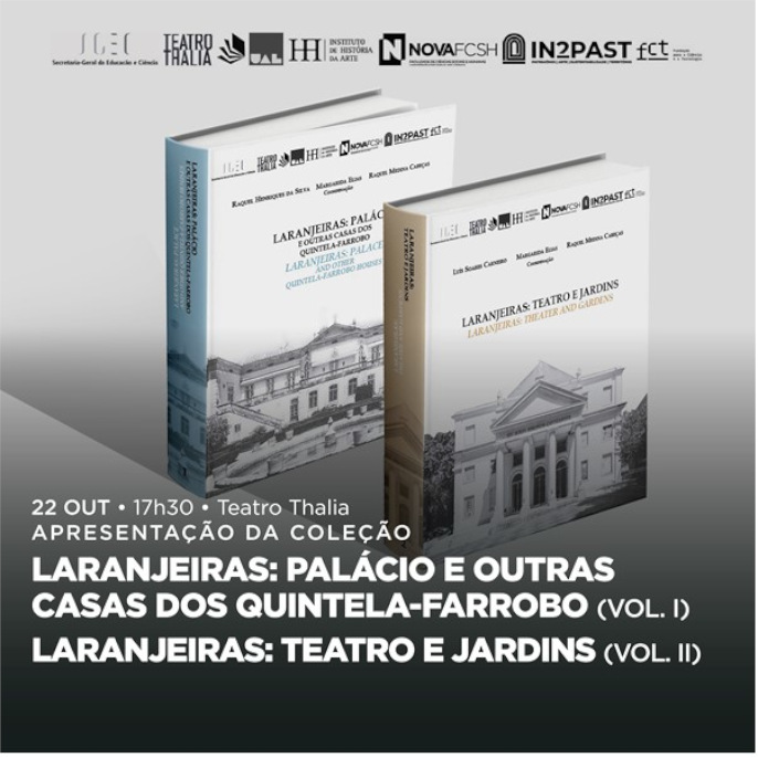 A edição bilingue dos volumes Laranjeiras: Palácio e outras Casas dos Quintela-Farrobo e Laranjeiras: Teatro e Jardins, resultam de uma iniciativa que consiste em dar a conhecer a história da Casa Senhorial dos Quintela-Farrobo, bem como o Teatro e os Jardins das Laranjeiras, numa parceria entre a Secretaria Geral da Educação e Ciência (SGEC), o Grupo Autónoma e o Instituto de História da Arte, da Faculdade de Ciências Sociais e Humanas da Universidade Nova de Lisboa (IHA NOVA-FCSH IN2PAST).