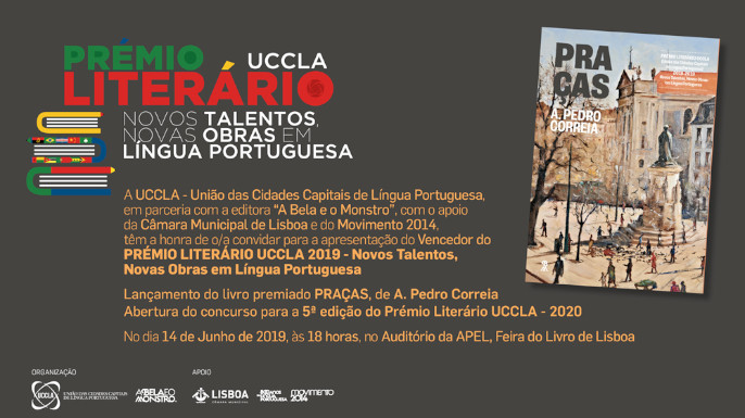 A UCCLA – União das Cidades Capitais de Língua Portuguesa, em parceria com a editora A Bela e o Monstro, convidam para o lançamento do vencedor do Prémio Literário UCCLA 2019 Novos Talentos, Novas Obras em Língua Portuguesa, e abertura do concurso para o Prémio Literário UCCLA 2020, a ter lugar no dia no dia 14 de junho, às 18 horas, no Auditório da APEL, Feira do Livro de Lisboa.