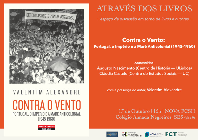 Na segunda sessão, a obra Contra o Vento. Portugal, O Império e a Maré Anticolonial, 1945-1960 (Temas & Debates, 2017) será comentada por Augusto Nascimento (Centro de História — Universidade de Lisboa) e Cláudia Castelo (Centro de Estudos Sociais — Universidade de Coimbra), com intervenções de estudantes e público.
