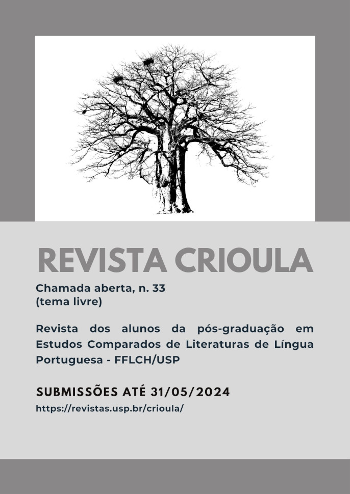 A Revista Crioula, publicação científica dos alunos do Programa de Pós-Graduação em Estudos Comparados de Literaturas de Língua Portuguesa da Universidade de São Paulo, em circulação desde 2007 e com classificação A4 do Qualis Periódicos da Capes, aceita, para o seu trigésimo terceiro número, colaborações de temática livre escritas por alunos matriculados em Programas de Pós-Graduação stricto sensu, do Brasil e do exterior, com textos inéditos até 31 de maio de 2024.